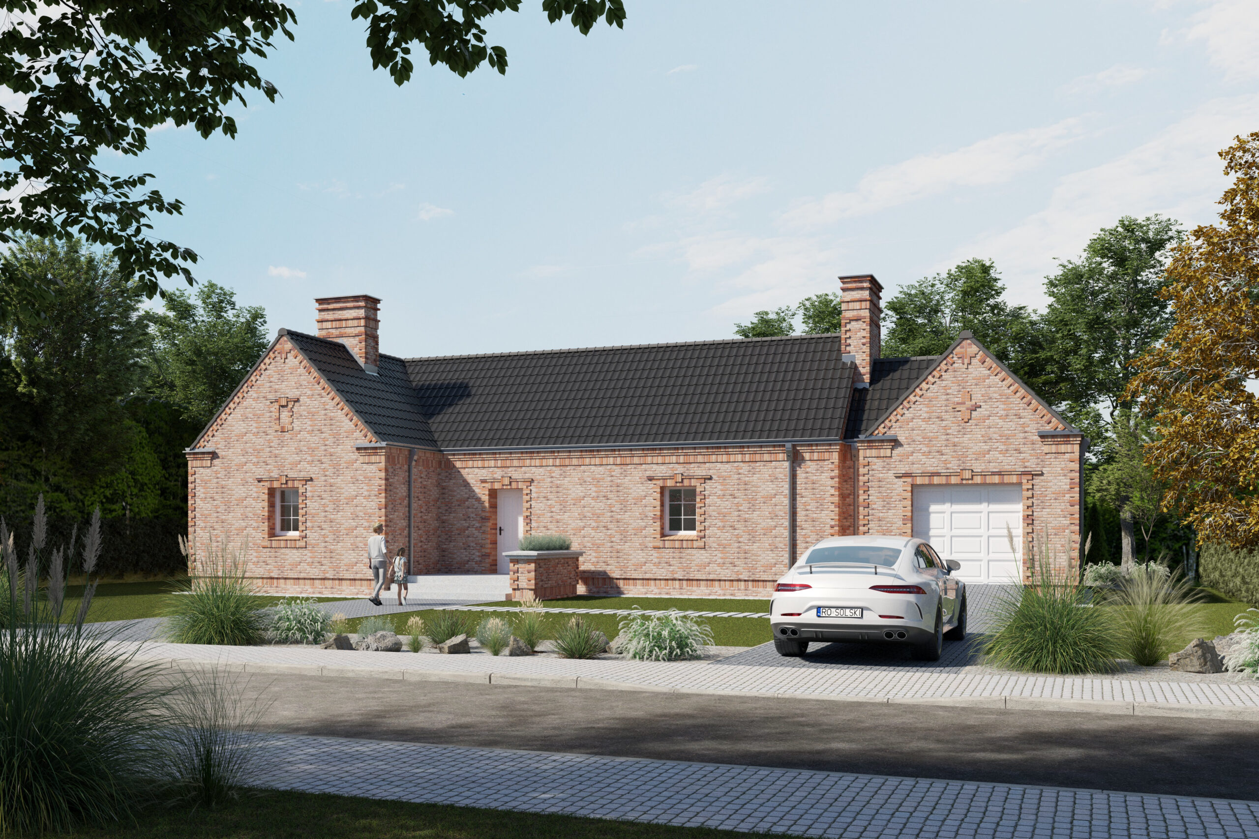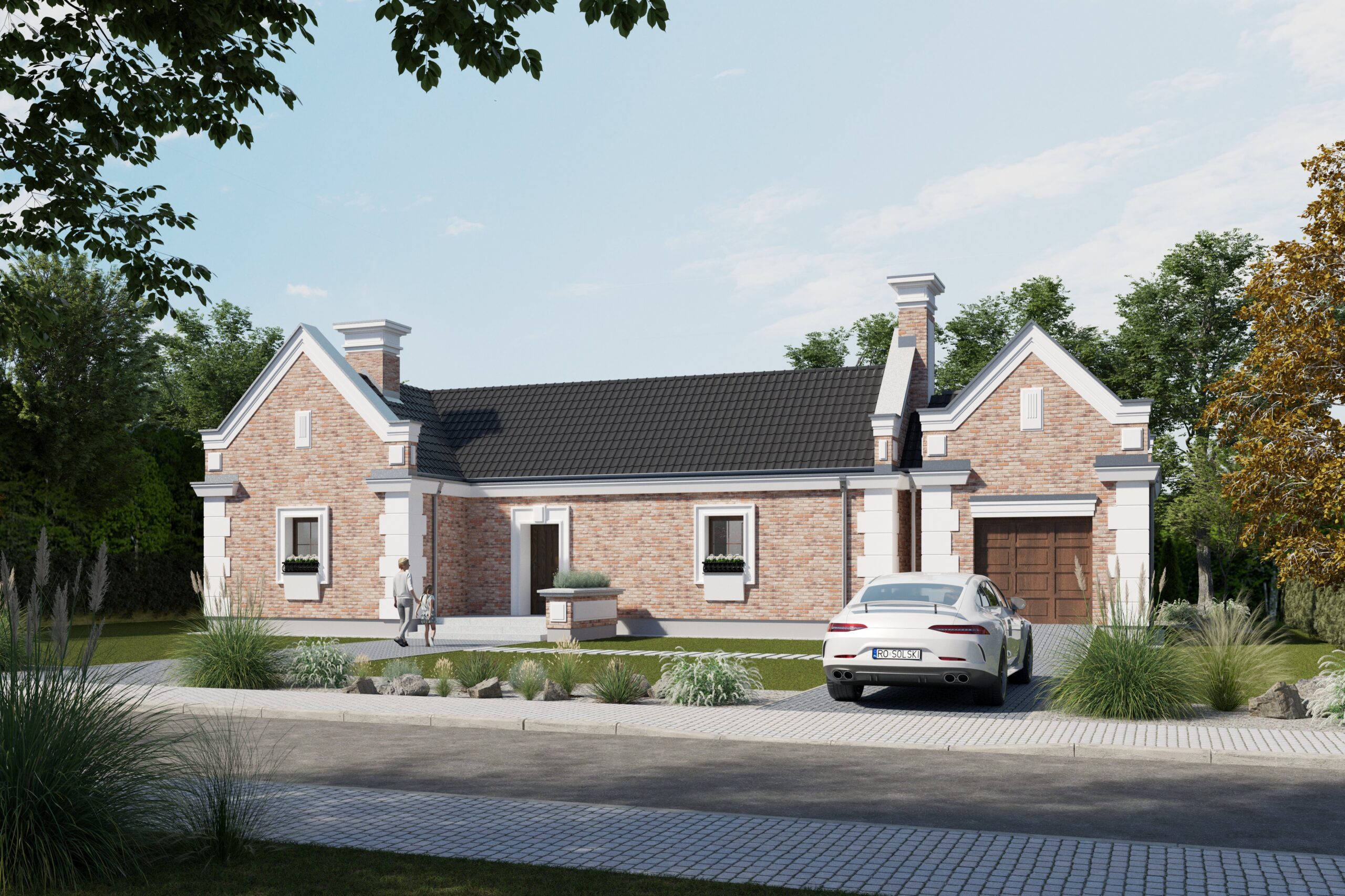 Elewacja ceglana była często spotykana w angielskich budynkach z czasów, gdy królową Zjednoczonego Królestwa była Wiktoria. W wariancie 3 pozostajemy przy ceglanej elewacji, natomiast dodaliśmy elementy otynkowane ze styropianu zbrojonego siatką powlekanego masą kompozytową i wykończone farbą. Narożniki budynku, obramienia okien i drzwi, wykończenie dachu czy gzyms nad garażem mogą być dopasowywane na indywidualne życzenie Klienta (boniowanie lub pilaster). Również ceglana elewacja – podobnie jak w wariancie Wiktoriański 2 – może być wybrana z gamy kolorystycznej ceramicznych cegieł elewacyjnych oferowanych przez firmę Vandersanden.